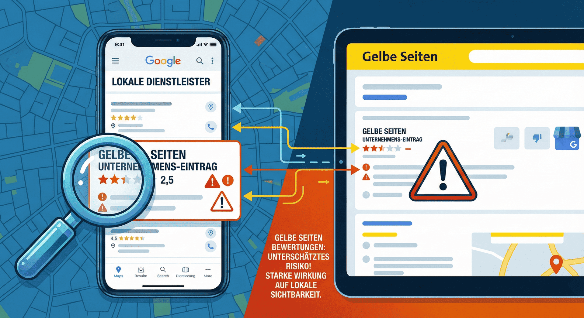 Neben den großen Playern darf man die Gelben Seiten Bewertungen und die Thematik nicht vergessen. Viele Branchenverzeichnisse ziehen ihre Daten von dort.